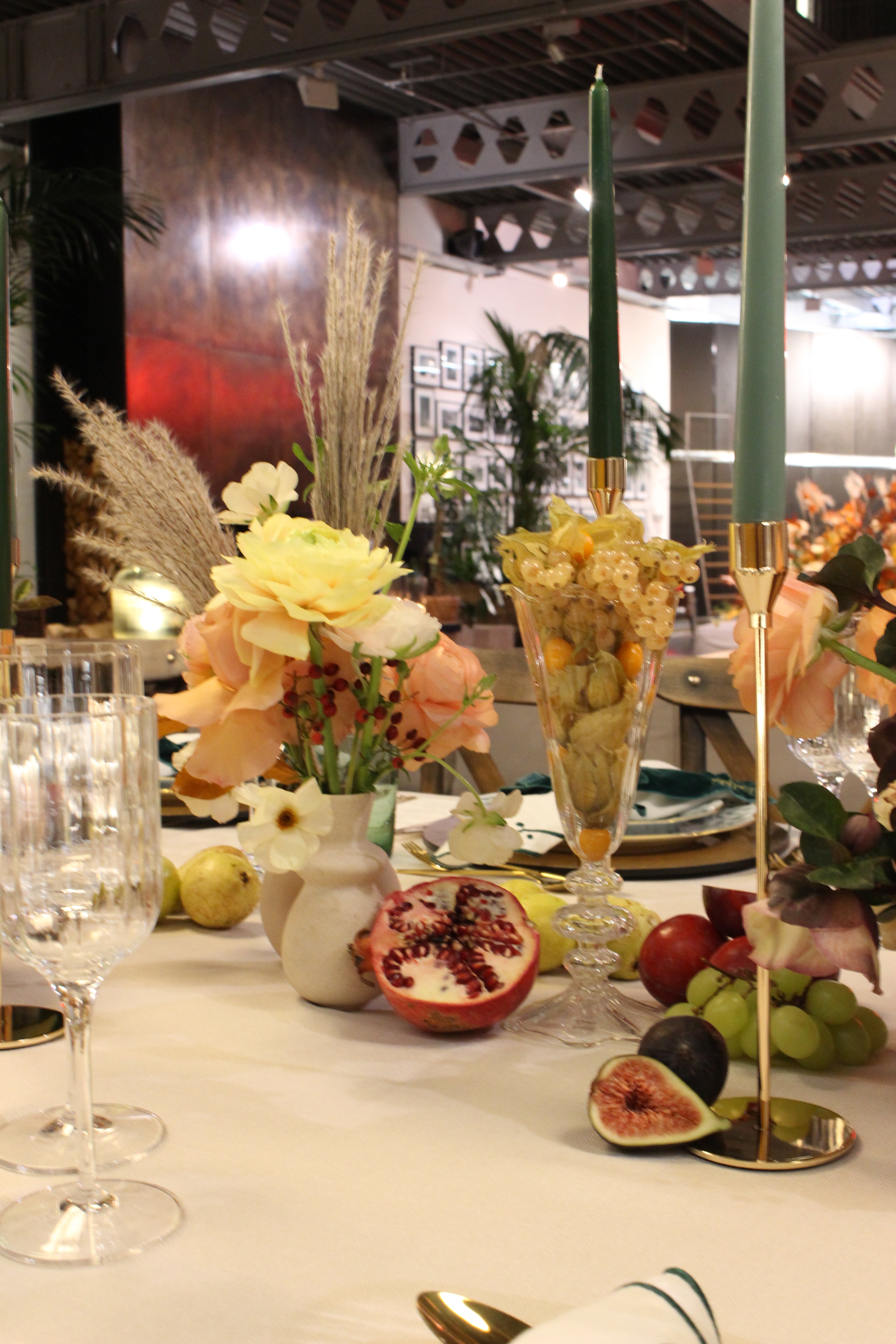 The tables adorned with an abundance of fruit and berries, surrounded by flowers in peach, amber, and fuchsia tones, created a spectacular visual display. Monique Lhuillier's signature touch was evident, reflecting the sophistication of her renowned designs.