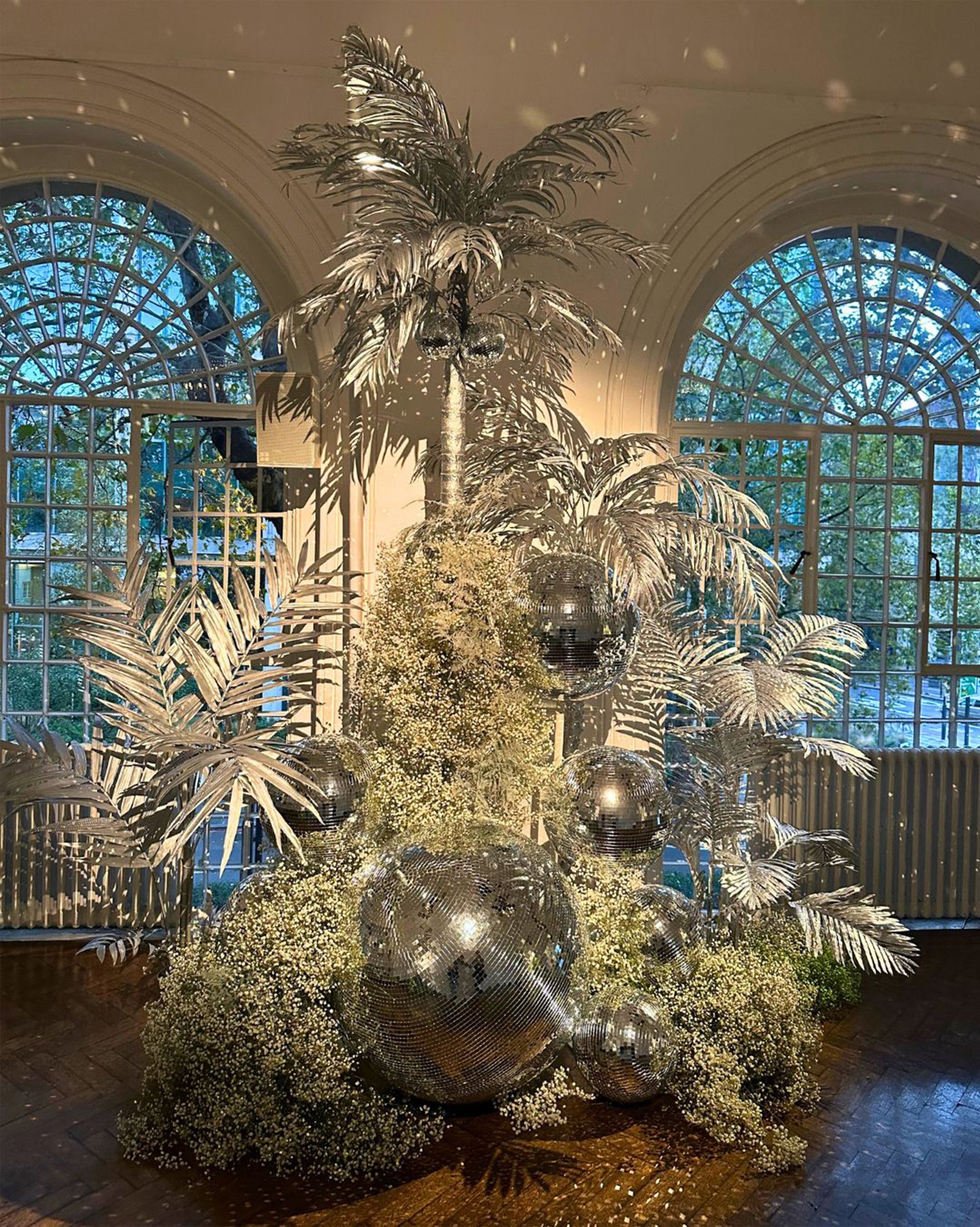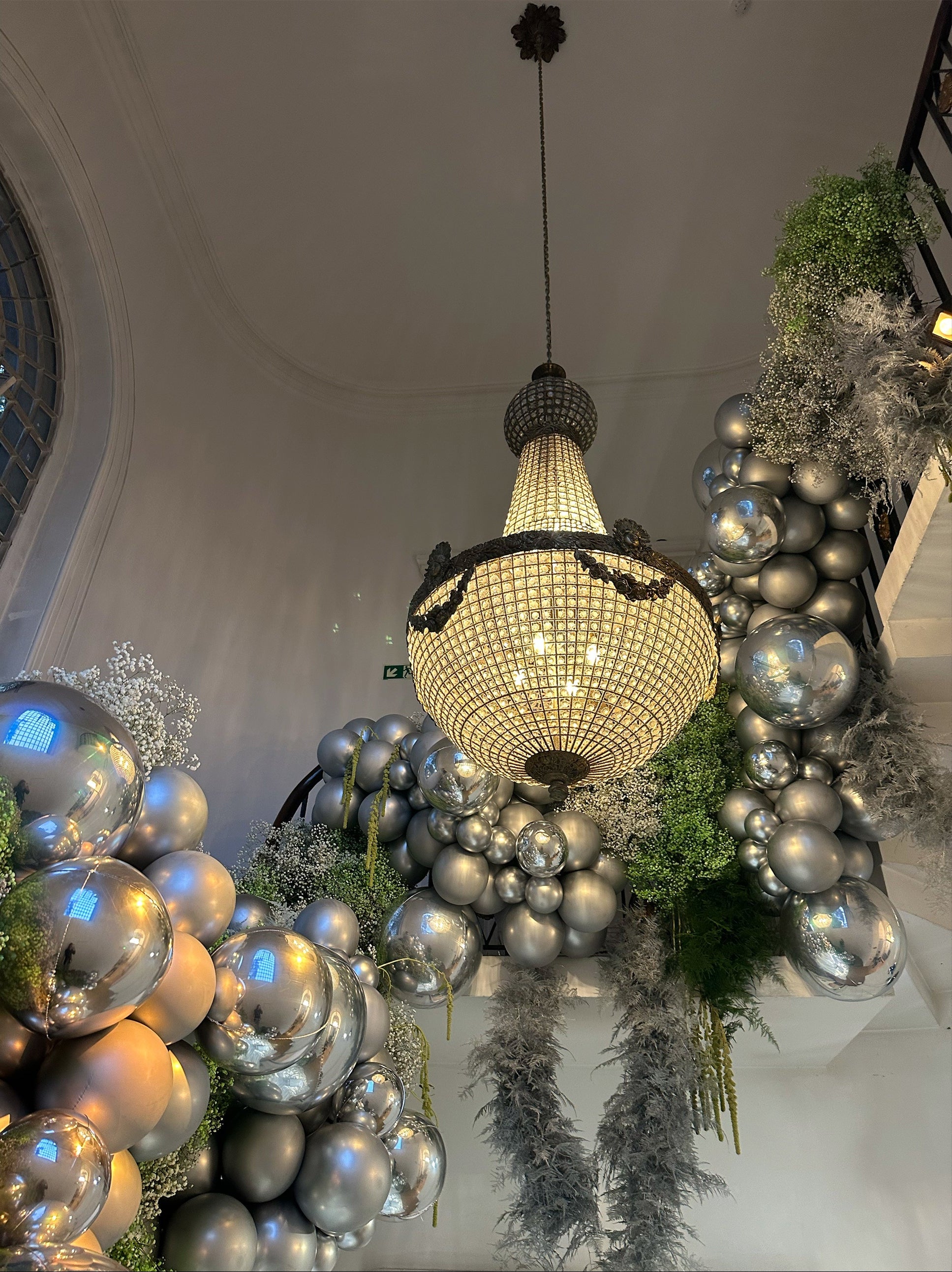 As we made our way upstairs, fabulous silver palm trees and glitter balls surrounded the space, filled with with breathtaking clouds of gypsophila in white and green shades, beautifully complimenting each display. What a night it was!