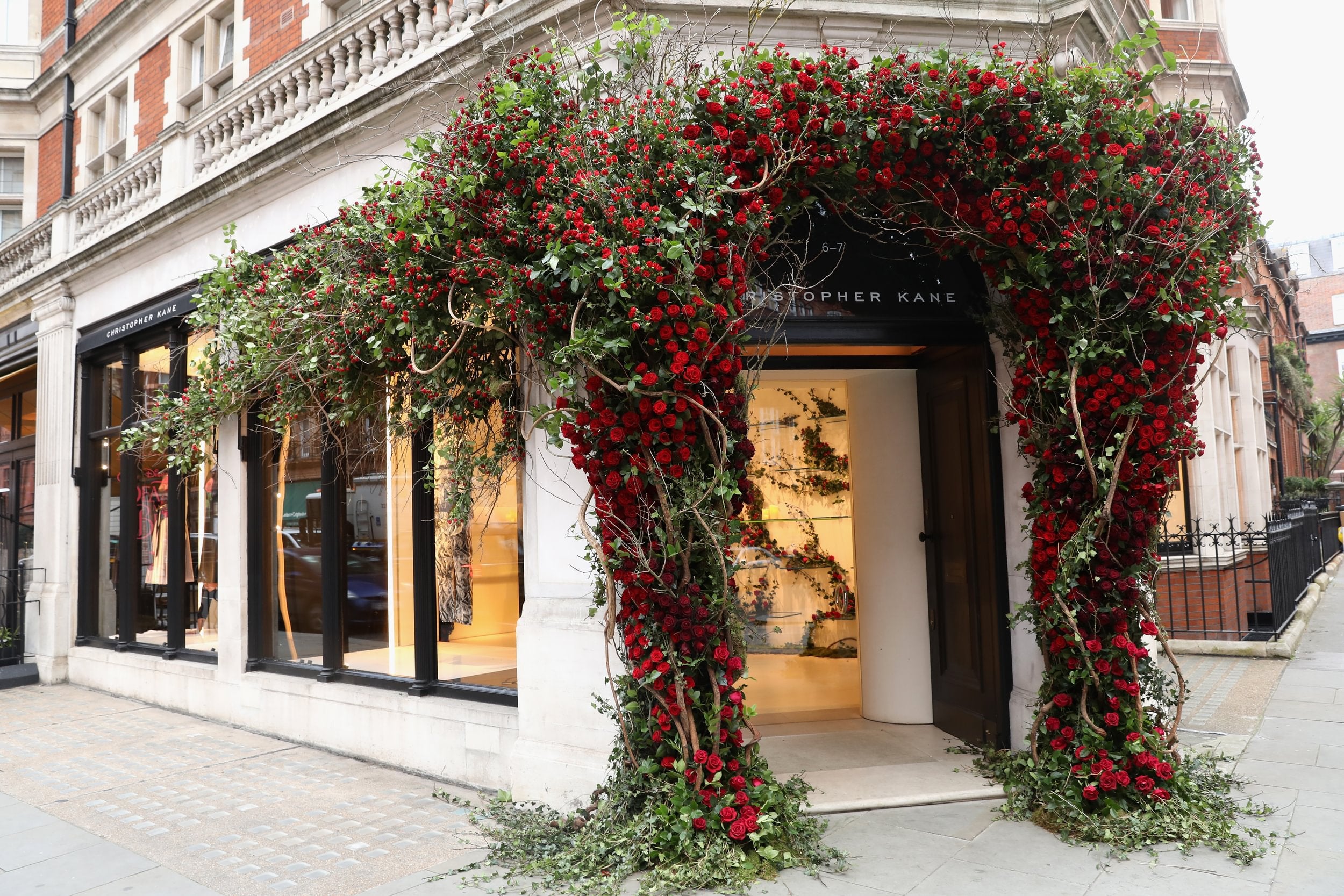 An enchantingly beautiful installation, consisting of 3000 fresh red roses and climbing ivy plants created for Christopher Kane