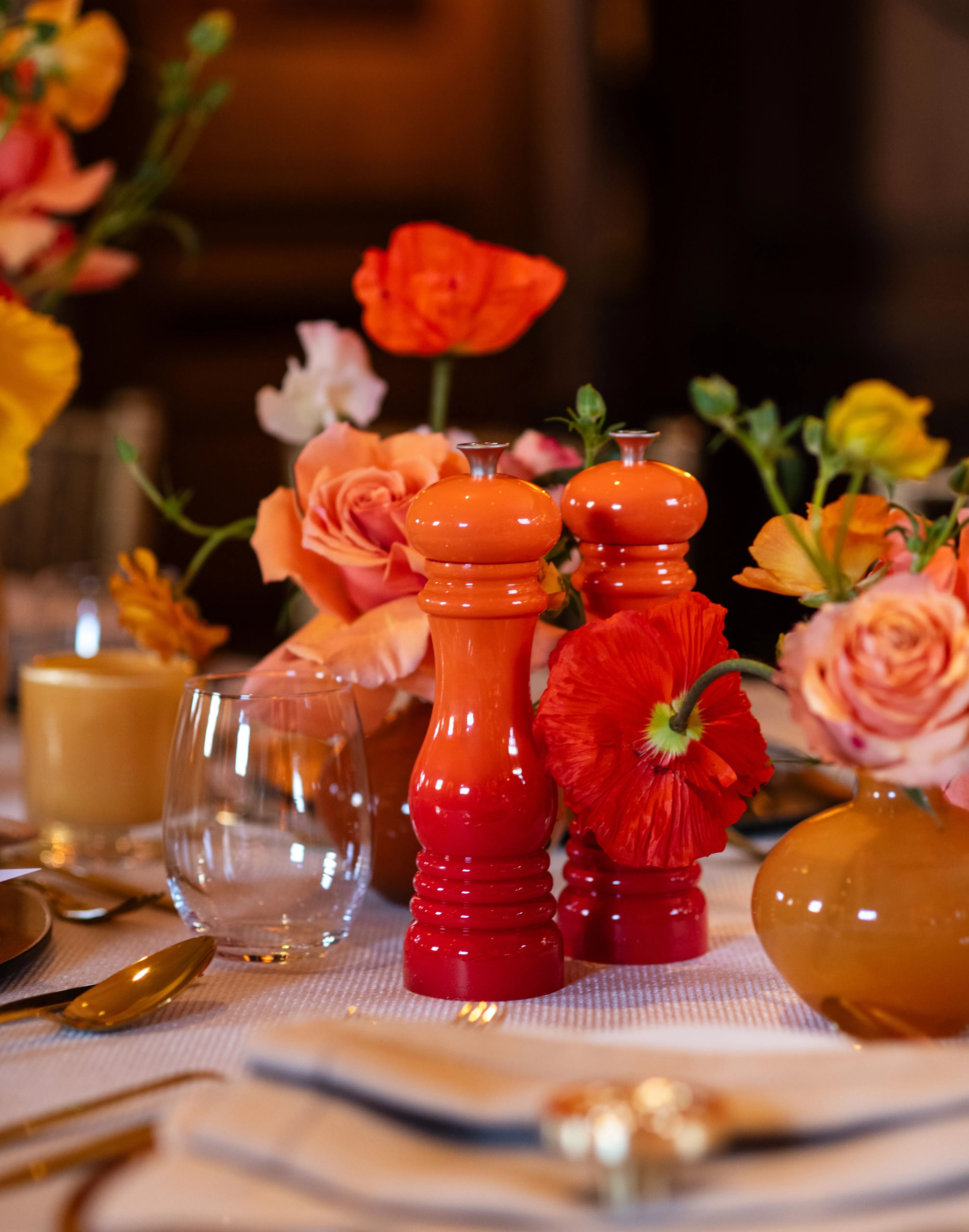 For such an iconic occasion, our flowers had to be nothing short of spectacular. We curated lush, expressive displays featuring sweet peas in vivid hues, delicate butterfly ranunculus, Carpe Diem and Lolita roses, sculptural tulips, and those show-stopping Icelandic poppies. Together, they created a rich tapestry of colour and texture—a perfect reflection of Le Creuset’s joyful legacy.