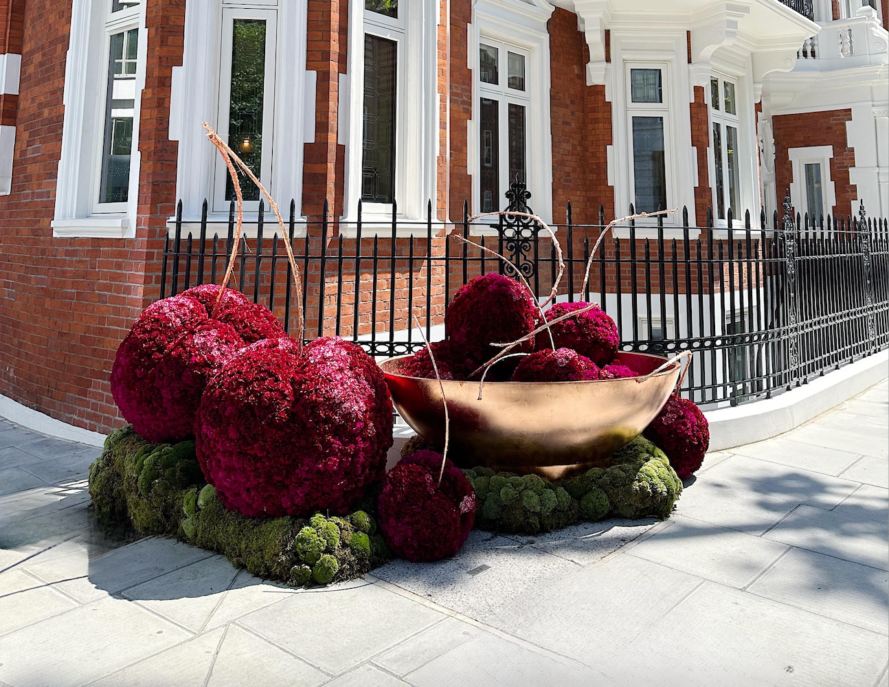Gold Award: The Gold-winning installation, titled ‘Ma Cerise,’ meaning ‘My Cherry’ in French, is in collaboration with ...At Sloane, a luxury and iconic hotel in the heart of Chelsea. The cherry was selected because it is symbolic of love, being a ripe, sensuous, and irresistible fruit. Constructed using natural moss, the cherries range in size, with some being up to 1 meter.