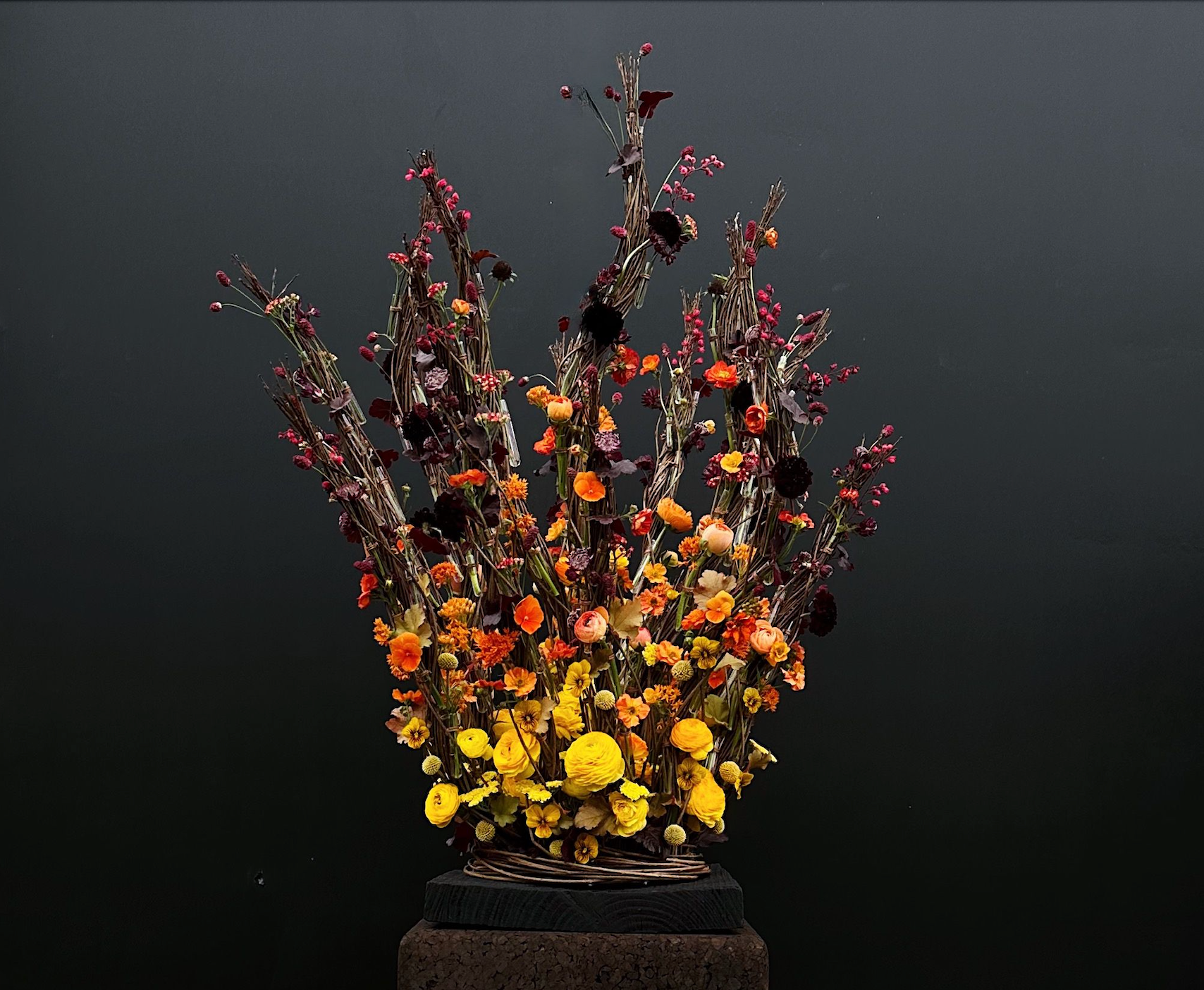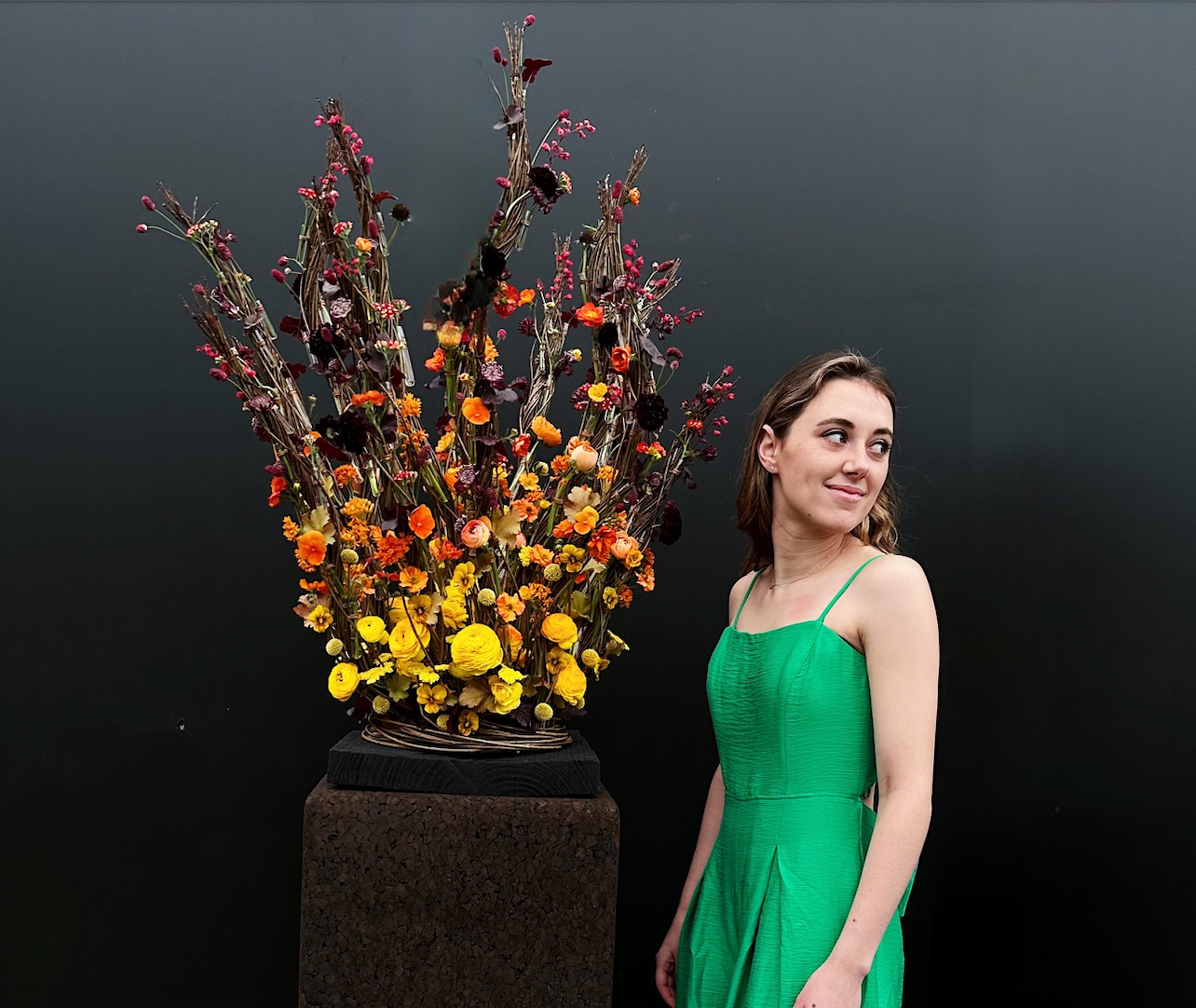 Lara’s Gold-awarded floral creation named ‘Spectrum of Fire’ focuses on the juxtaposition between the beauty fire possesses and the damage it causes. “Wildfires are becoming more common with climate change, and we must consider how to play our part in protecting our fragile planet for future generations.”