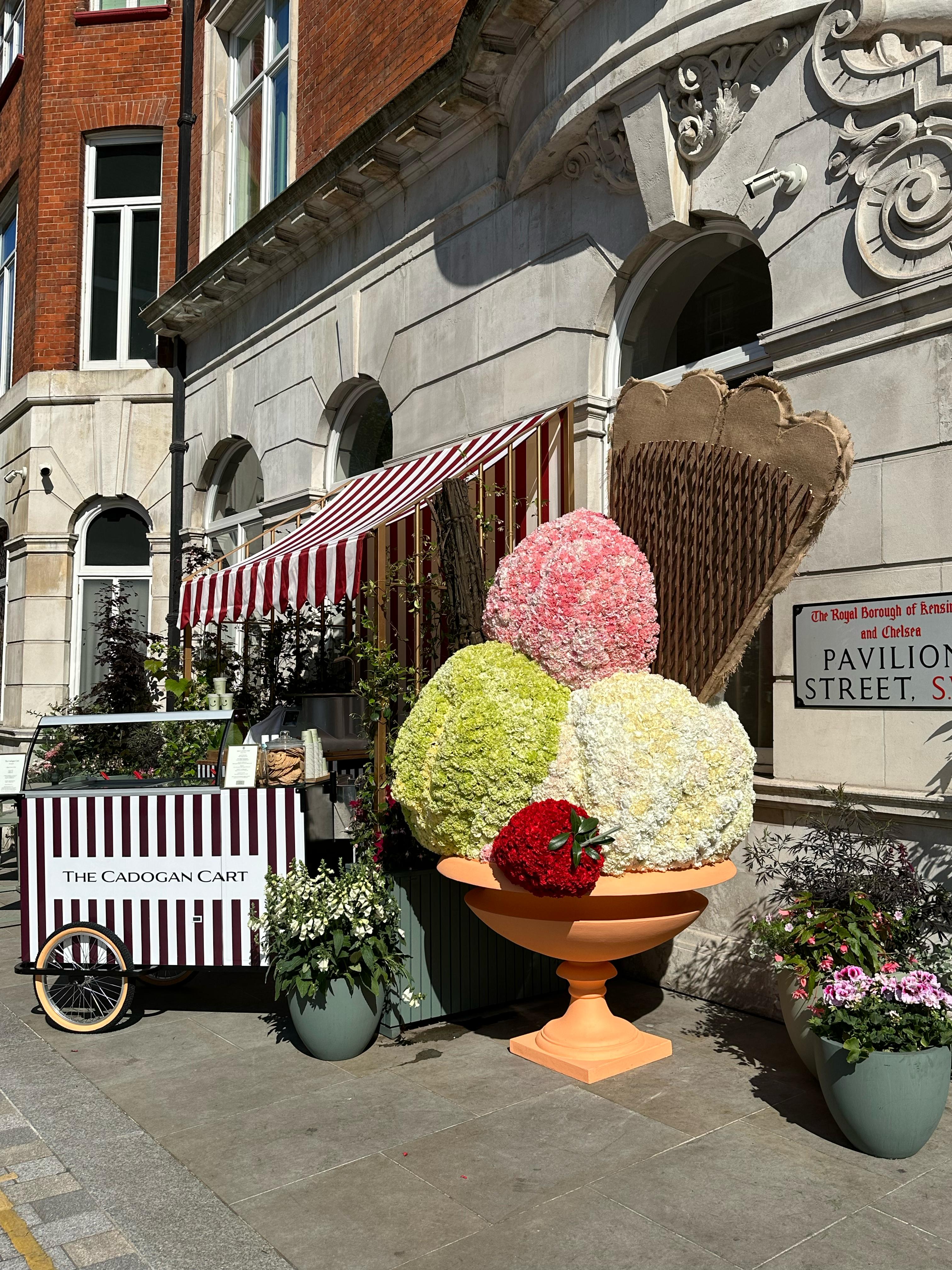 Silver-Gilt Award: The Silver-Gilt winning piece, titled ‘Ice Cream Sundae,’ captivates all ages and audiences at The Cadogan, a Belmond Hotel, by transporting them to a whimsical world where desserts meet floral fantasies. The sundae stands as a masterpiece of culinary artistry and botanical beauty. Within its depths, layers of vibrant carnations overflow, mimicking the appearance of luscious scoops of gelato. Alongside the display, The Cadogan has announced a partnership with acclaimed chef Anshu Anghotra on the launch of The Cadogan Cart, serving the finest artisan gelato.