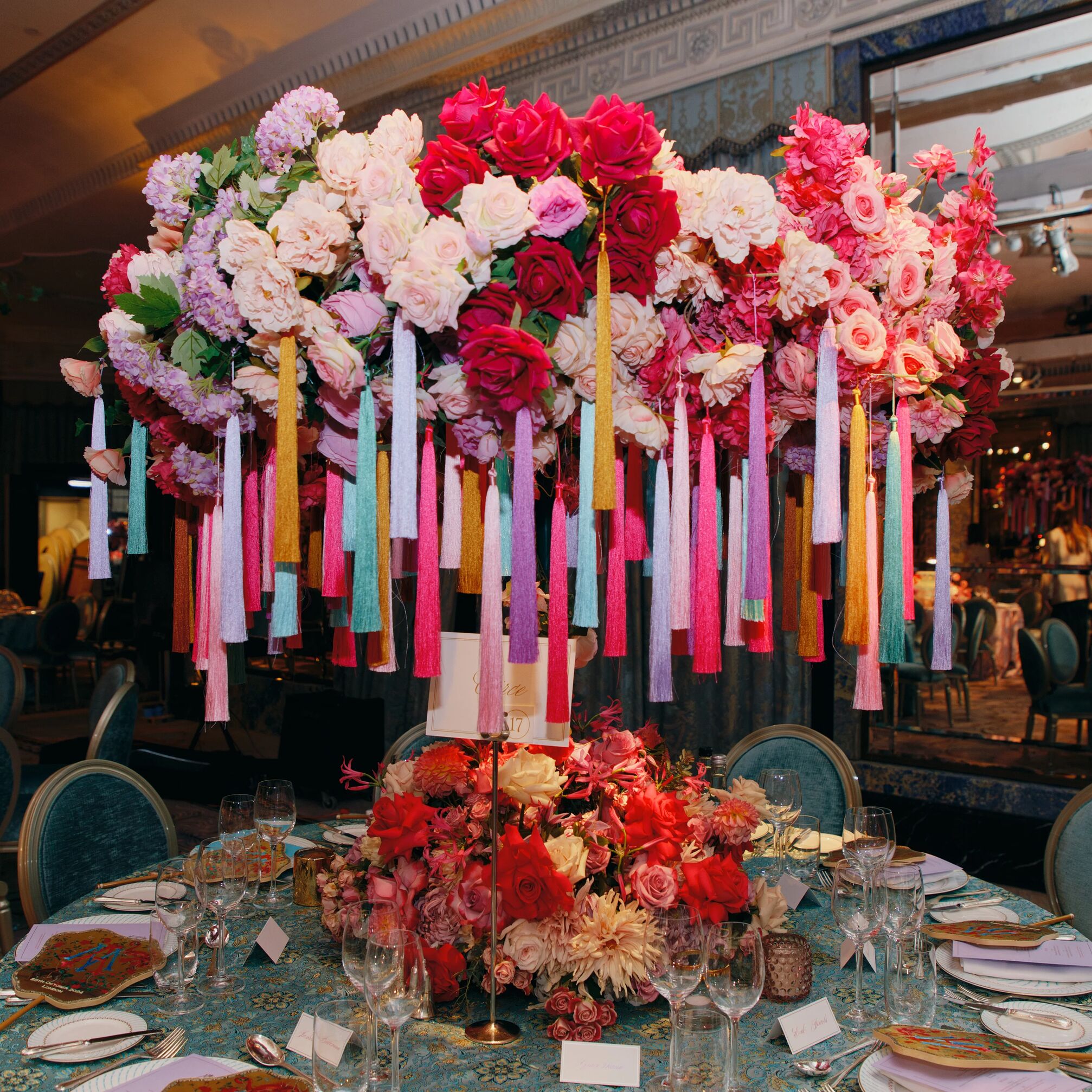 Throughout the dining room, magnificent flower chandeliers hung overhead, adorned with colourful tassels that added an element of playfulness and sophistication.