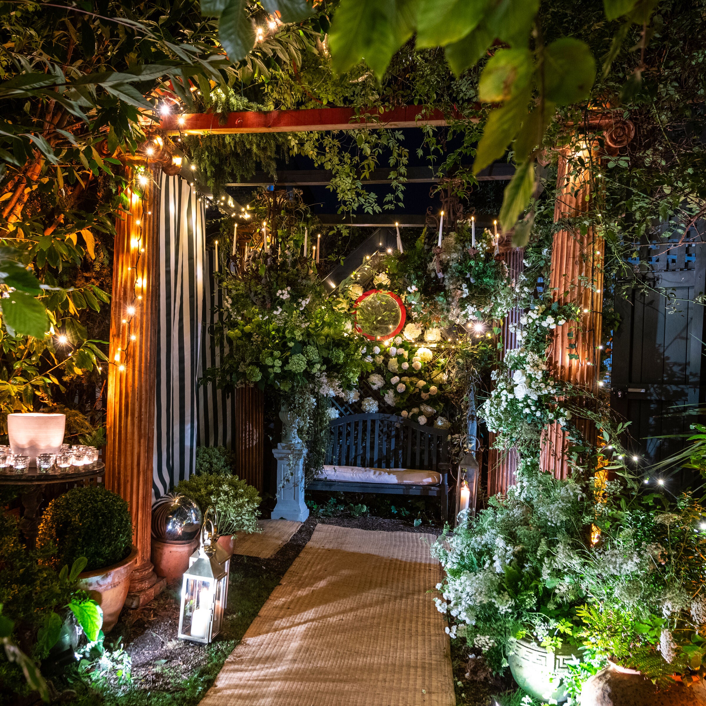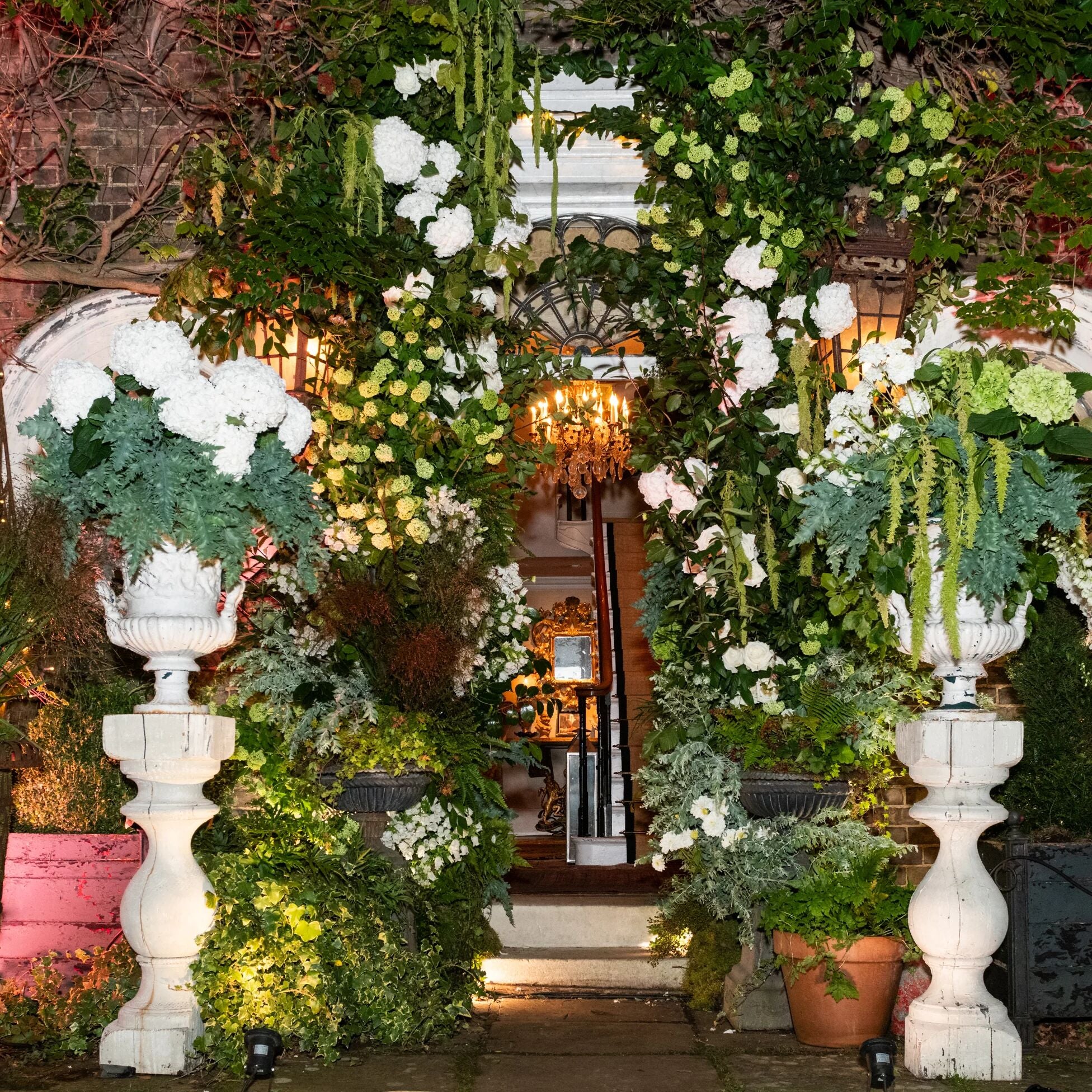 To further elevate this magical home, existing urns dotted around the garden were filled with hydrangeas, ivy, jasmine, and fern plants—transforming every corner into a floral wonderland. Flowers cascaded down in a beautiful, overgrown manner, adding an ethereal touch to every corner.