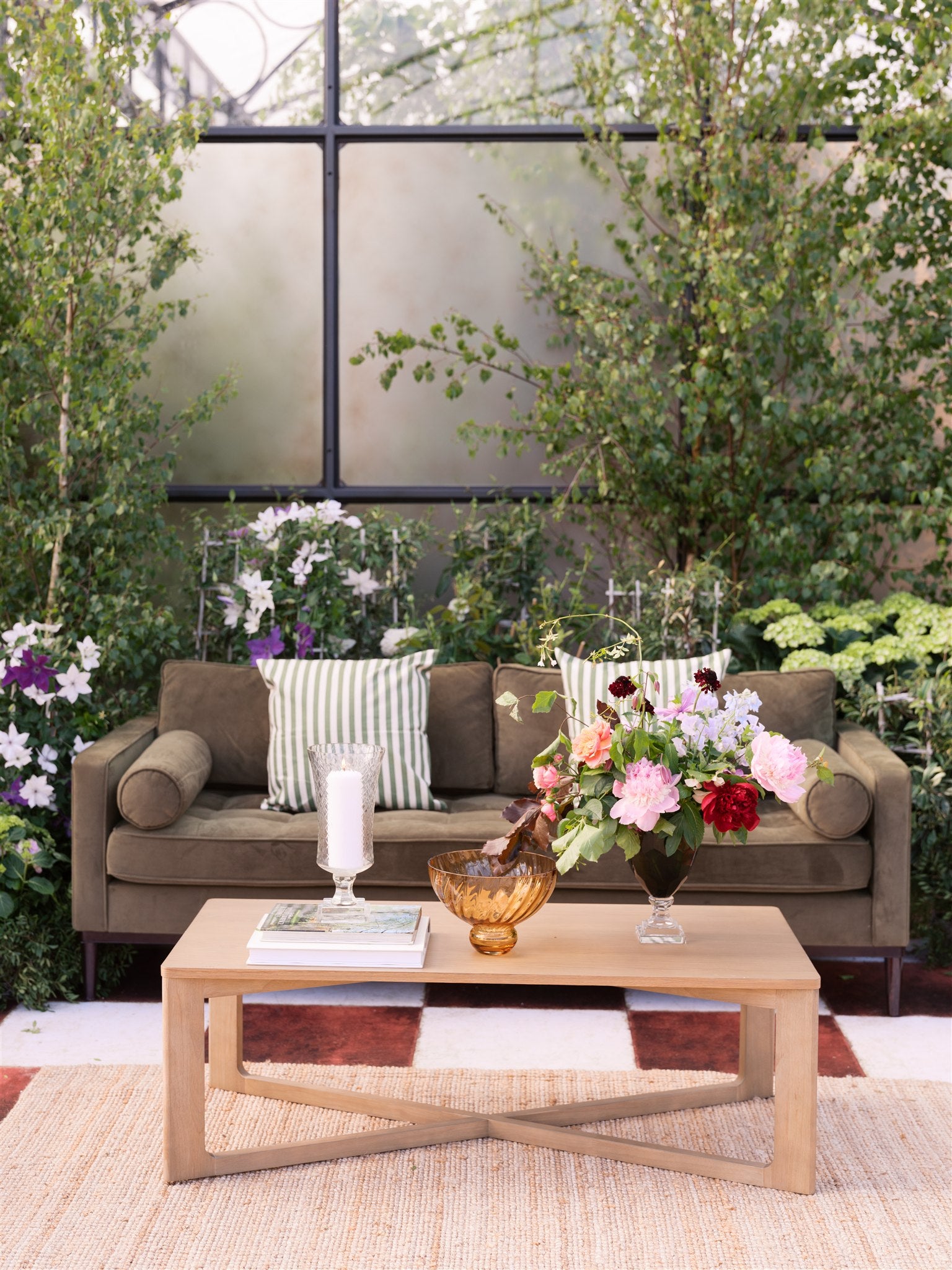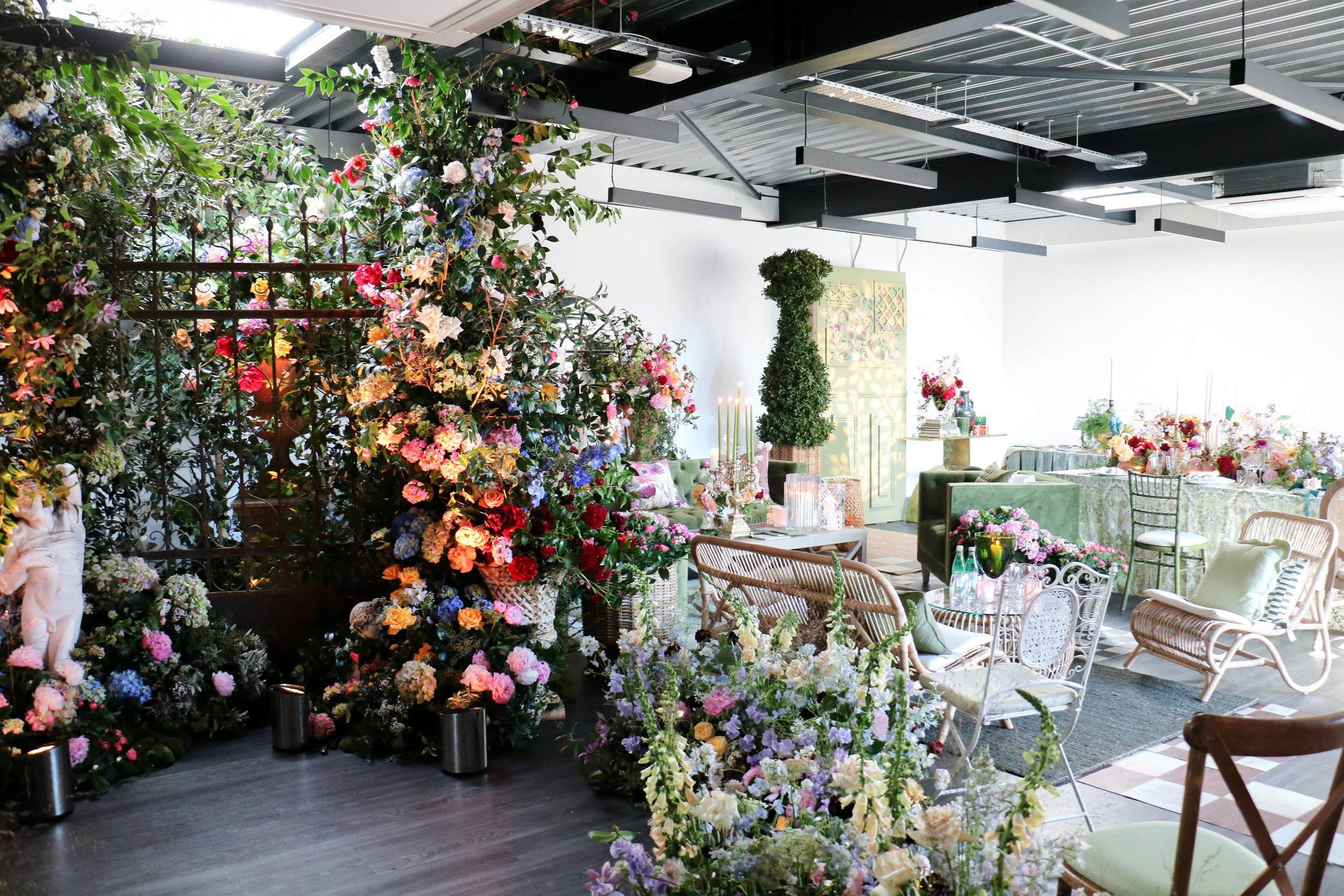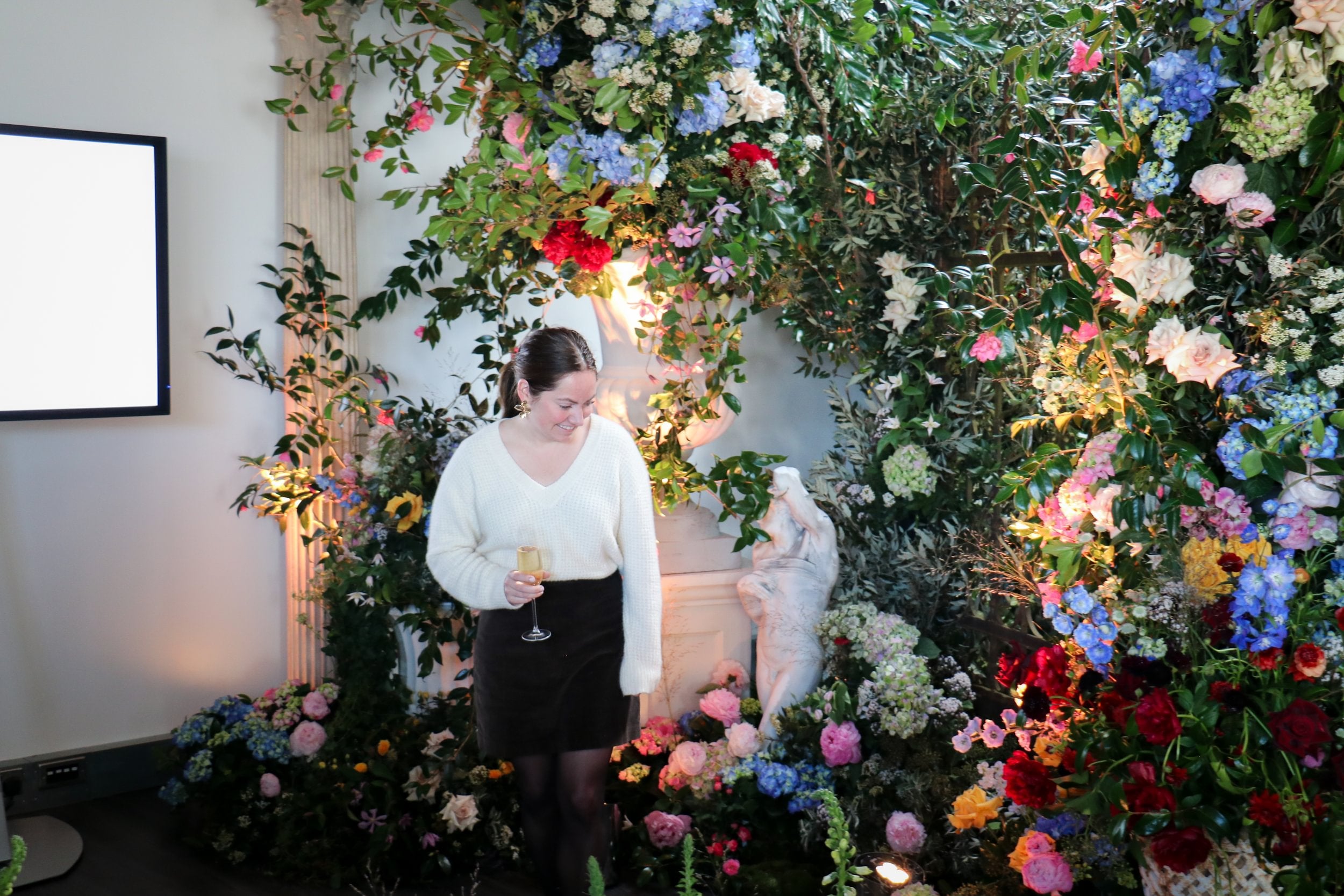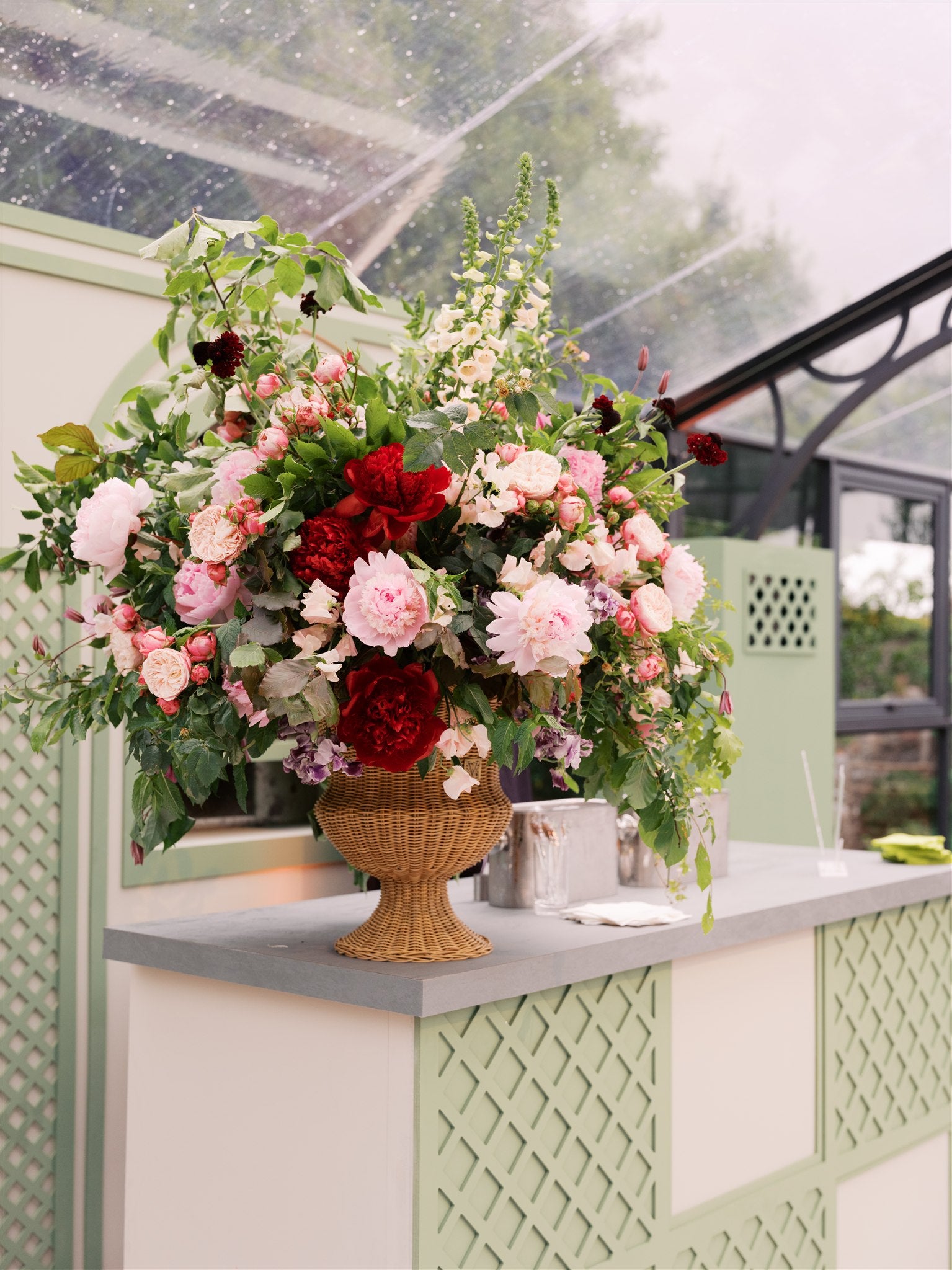 Our work extended far beyond florals, from dressing the bar in layers of topiary and foliage to creating relaxed lounge areas filled with rattan furniture, candles and lush arrangements. The design language was cohesive throughout: natural, textural, and full of English garden charm.