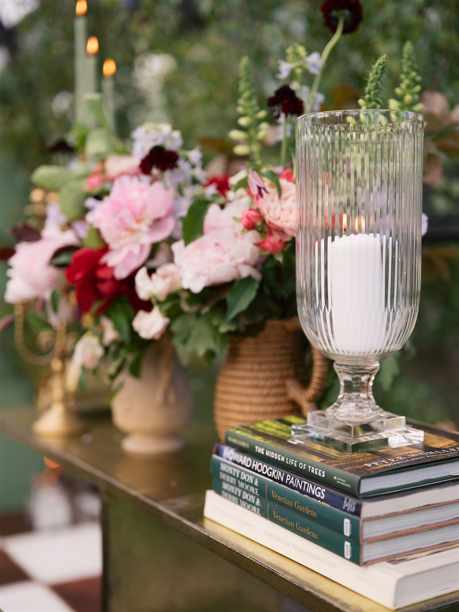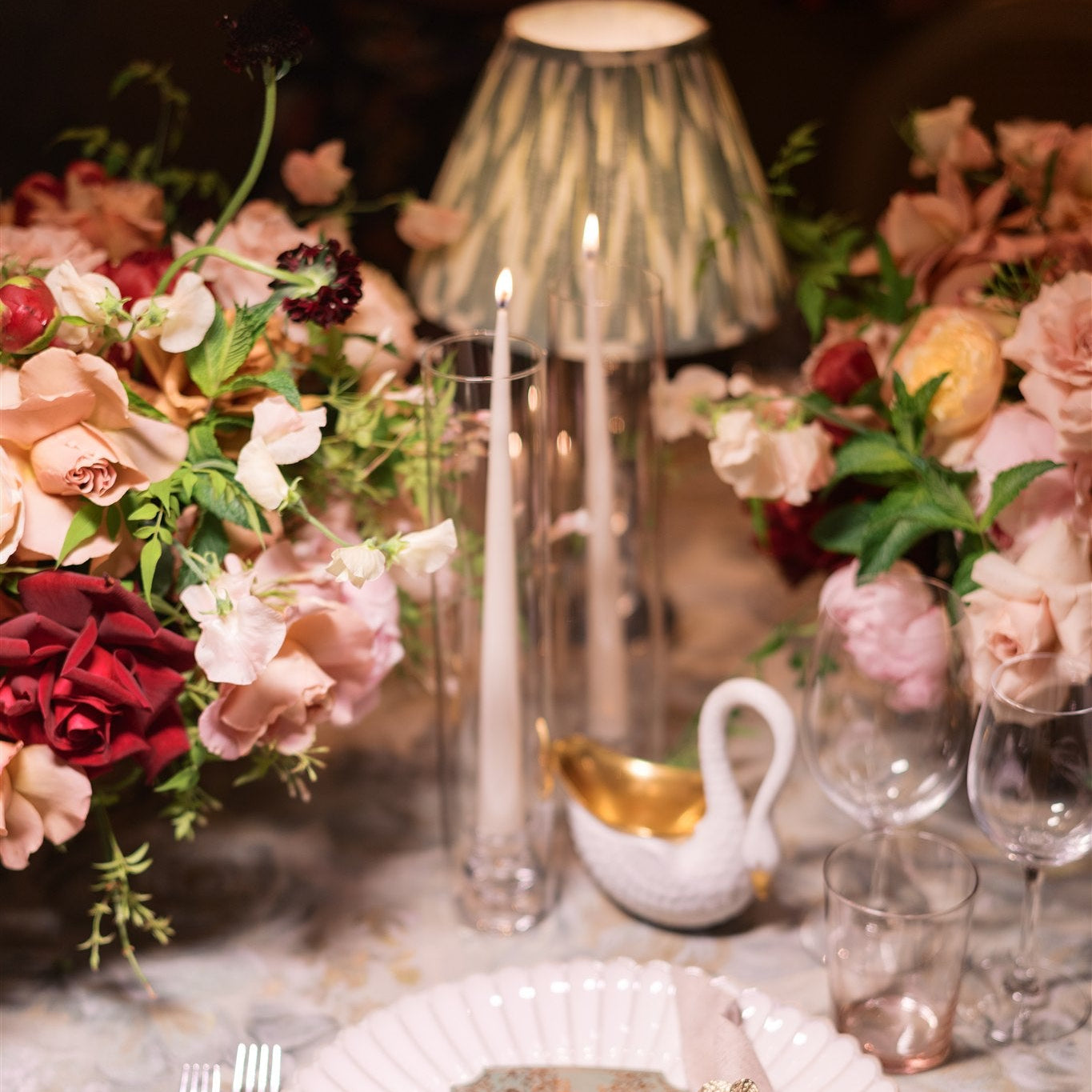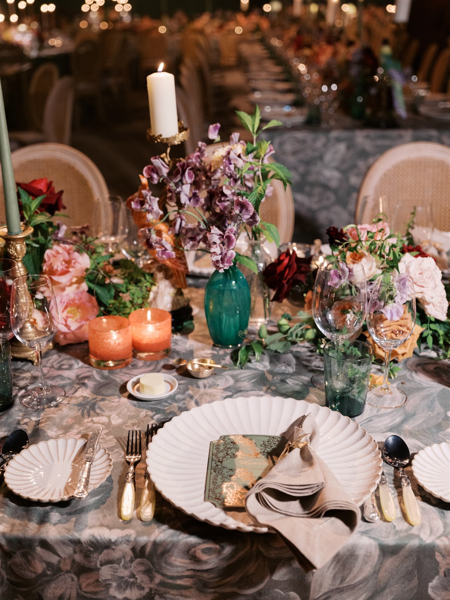 Each surface was styled with Wild at Heart’s signature attention to detail - antique brass candelabras, handblown glassware, vintage books and softly flickering candlelight nestled amongst flowers in hues of blush, garnet and green. The addition of beautiful seasonal florals tied every element together, combining artistry and personal touches to craft a truly memorable and immersive experience.