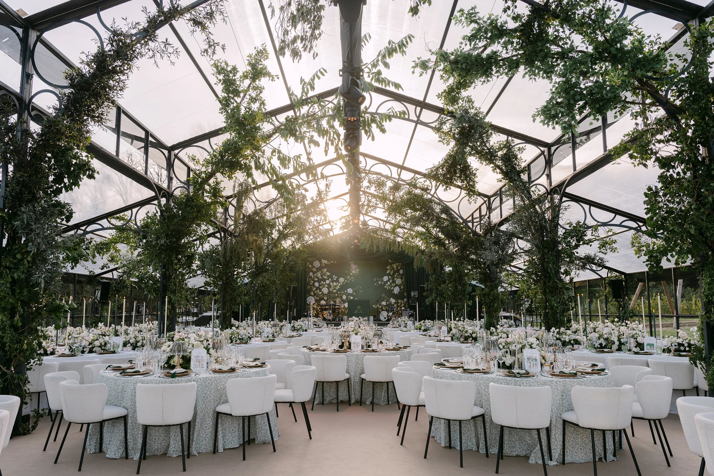 Whether creating a ceremony framed by thousands of white flowers, a candlelit reception layered with dramatic colour, or an entire landscape brought indoors, our designs feel abundant yet refined, expressive yet considered.